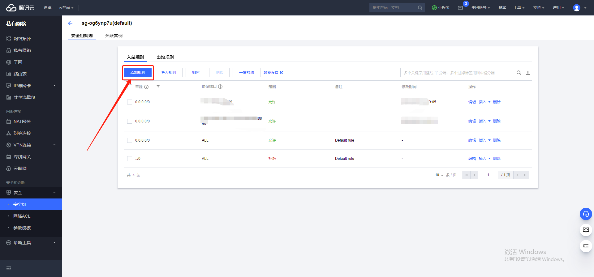 3:服务器安全组开放端口配置:实例-安全组-修改规则:0.0.0.0/0 [TCP:22,888,8888,465,80,443,20,21][TCP:39000-40000]