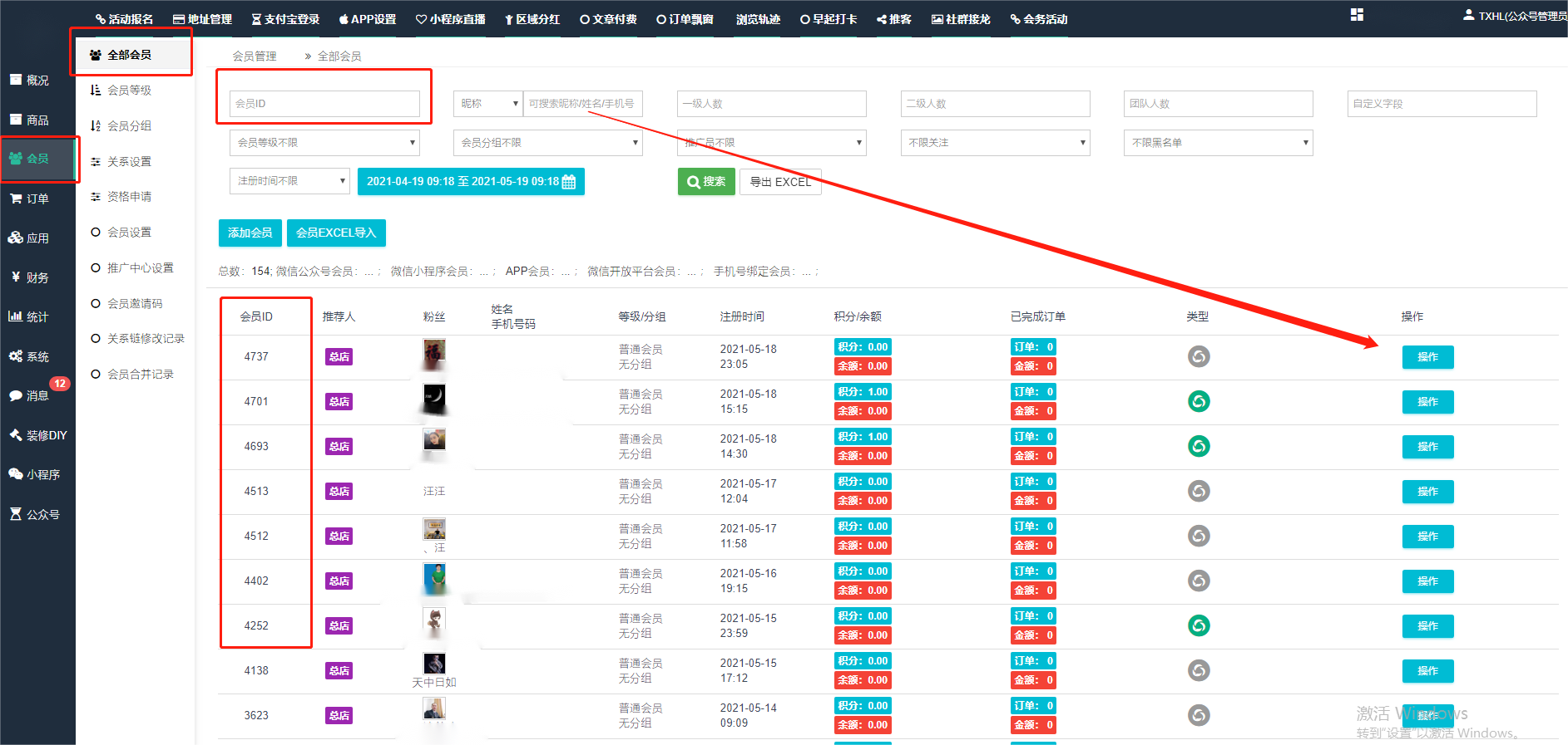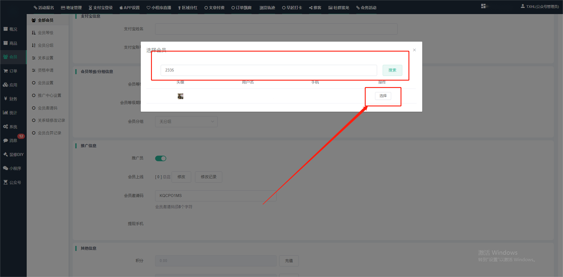 目录 搜索 展开 一、前期准备资料二、数字乡村码-上线操作指南1、服务号的申请流程及认证2、申请小程序流程3、开放平台绑定小程序和公众号三、数字乡村码-系统操作数字乡村码系统管理-概况数字乡村码-商品管理1、发布商品2、商品列表3、商品表单4、商品分类5、品牌管理6、配送模板7、评论管理8、优惠券管理9、商品标签10、退货地址设置11、满额优惠12、批量操作13、配送方式14、基础设置15、商品隐藏四、数字乡村码-会员管理1、全部会员2、会员等级3、会员分组4、资格申请5、会员设置6、推广中心设置7、会员邀请码8、会员关系链修改关系链修改记录9、会员合并记录10、账号注销管理11、会员设置中心五、数字乡村码-订单管理1、订单管理列表2、订单处理流程3、订单状态4、订单修改价格5、订单退款退货6、多包裹发货7、批量发货订单操作步骤8、催发货订单9、物流查询六、数字乡村码-财务管理1、余额设置2、会员余额3、充值记录4、转让记录5、余额明细6、收入明细7、提现设置8、提现统计9、积分管理10、转账审核11、收益广告12、批量充值七、数字乡村码-系统管理1、商城入口2、商城设置①、商城设置②、订单设置③、物流查询④、短信⑤、联系方式⑥、分类⑦、优惠券⑧、分享⑨、幻灯片⑩、广告位⑫、地图设置3、交易设置4、微信模板消息自定义消息模板(新版)自定义消息模板(旧版)小程序消息模板公众号模板消息变更公告5、语言设置6、权限管理7、多媒体管理八、数字乡村码-消息管理九、数字乡村码-应用管理十、数字乡村码系统-数据统计十一、数字乡村码-页面装修DIY1、模板管理2、店铺页面3、顶部导航4、底部导航5、DIY模板市场6、首屏广告7、基础设置8、装修DIY尺寸建议十二、供应商功能插件操作指南1、供应商2、门店-收银台门店申请和使用步骤门店管理①、门店-收银台 营销设置②、门店-收银台 分润设置门店分类门店申请门店审核门店商品门店商品订单收银台订单数据统计核销员基础设置默认设置门店装修3、微社区4、会务活动十三、营销插件操作指南活动报名提货卡新人奖微店问卷调查积分视频分享1、视频分享基础设置2、视频分享发现管理3、视频分享分类管理4、视频分享评论管理5、视频分享分红记录6、视频分享短视频中心每日红包幸运大抽奖签到优惠券二维码任务奖励优惠劵文章音频文章付费文章限时购新海报拓客卡操作流程积分活动素材中心视频红包十四、入驻门店应用类1、门店预约2、附近商品3、门店定位设置4、门店控制5、门店满额包邮6、门店满额减7、导入商品8、门店搜索9、门店股东10、核销券11、多门店核销1、商城后台设置2、前端功能演示十五、常见问题1、后台登录密码修改流程2、会员-余额,积分,后台如何进行充值与扣除3、如何修改上下级关系4、一种万能的获取商城小程序路径的方法 暂无相关搜索结果! 阅读次数:1423 本文档使用 模王系统 发布 3、如何修改上下级关系 如何修改上下级关系一.如何修改上下级关系?1.会员-全部会员-可以通过搜索用户的独立ID,或者用户微信昵称,找到此会员,然后点击右边的(操作)2.再点击会员详情。3.滑到下面,有个推广信息-会员上线,点击修改4.输入上级的ID号,点击搜索,出来此上级会员后点击选择。5.滑到最下面,一定要点击提交按钮。文档更新时间: 2024-01-05 14:50 作者:链上旅行