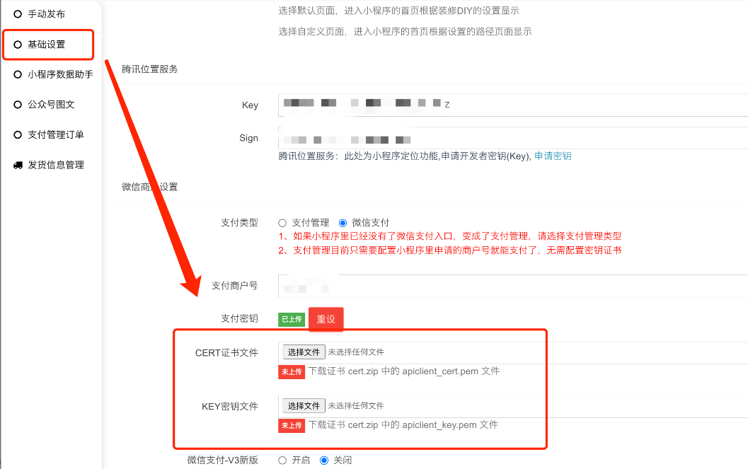 注意:若商城小程序的是跟公众号共用同主体的微信商户号,后台小程序的微信支付两证书也要重新上传.