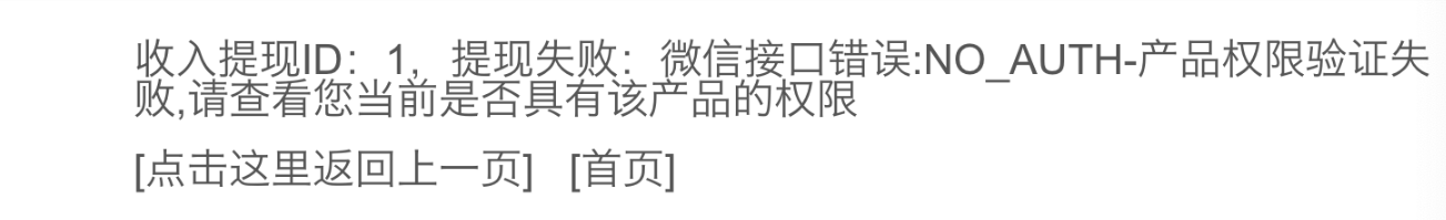 十三、用户提现到微信,后台打款提示提现失败,NO_AUTH-产品权限验证失败,请查看您当前是否具有该产品的权限;或者提示产品权限异常