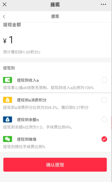 2、爱心值提现