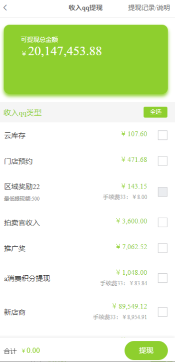注意:我的提现页面--提现金额是会员申请时的金额,没有扣除手续费;